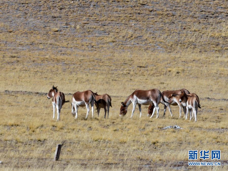 這是10月30日在青海省果洛藏族自治州境內拍攝的一群藏野驢。新華社記者 張龍 攝