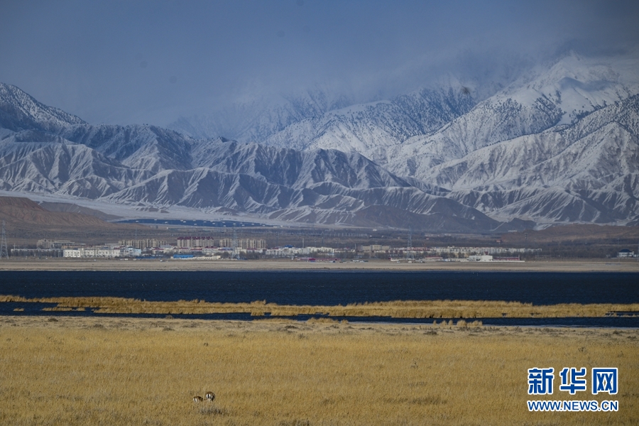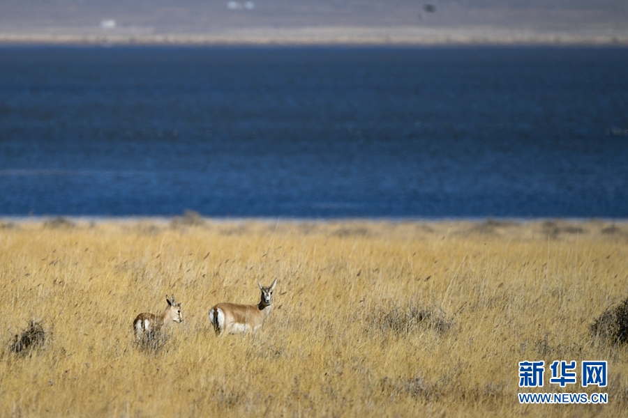 在都蘭湖國家濕地公園內拍攝到的鵝喉羚。(11月21日攝)新華網 潘彬彬攝