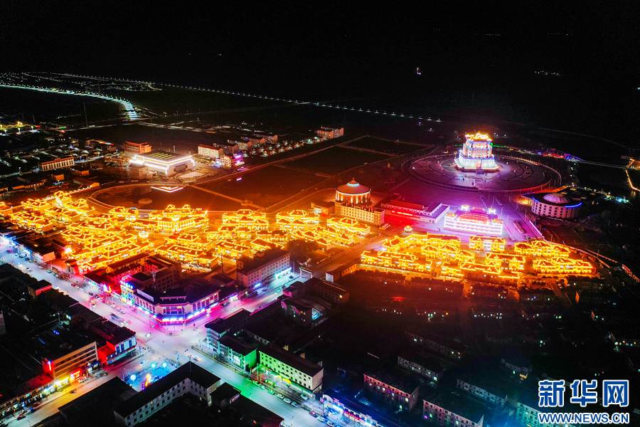 夜幕下的剛察縣燈火通明。新華網發(董松松 攝)