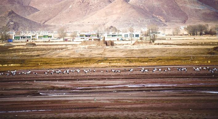 在西藏,黑頸鶴從繁殖地色林措到越冬地,有兩條線路,一條向東南抵達(dá)拉薩,另一條向西南到達(dá)日喀則,而這兩個(gè)方向所在地便是我們所說(shuō)的雅魯藏布江中游河谷,也是黑頸鶴國(guó)家級(jí)自然保護(hù)區(qū),包括三大塊——“一江兩河”,即雅魯藏布江及其支流拉薩河、年楚河,黑頸鶴的越冬生活便是圍繞它們展開(kāi)的。