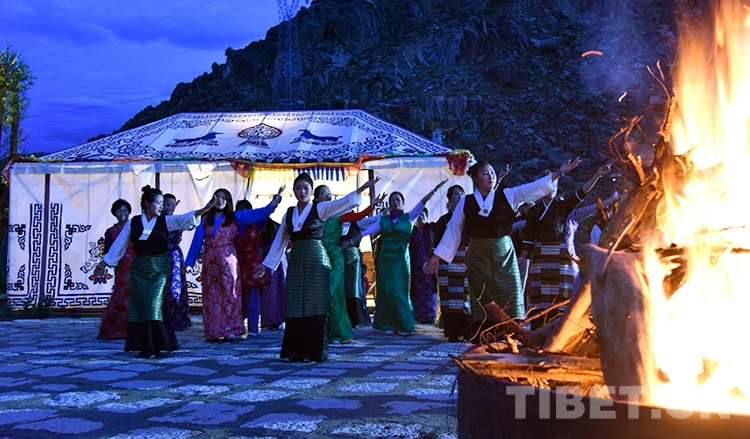圖為拉薩市堆龍德慶區“德吉藏家”,人們圍著篝火跳鍋莊 攝影:王媛媛