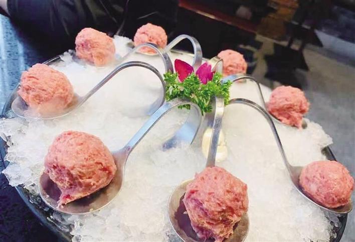 “我們鎮三關老火鍋所采用的有機特色菜品全部出自自家農場,綠色健康無污染,顧客可以吃得放心、安心?;疱仠讉鞒姓谥貞c火鍋做法,辣而不燥,口齒留香,讓人愛不釋口。同時,采用純牛油熬制,沒有加入任何添加劑,吃完后不會全身彌漫著火鍋味道。我們將繼續為大家帶來健康營養的火鍋,歡迎前來品嘗。”代紅介紹。(圖 記者 張雪芳)