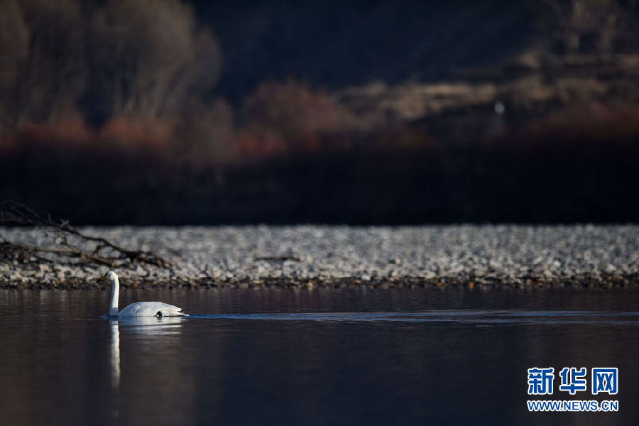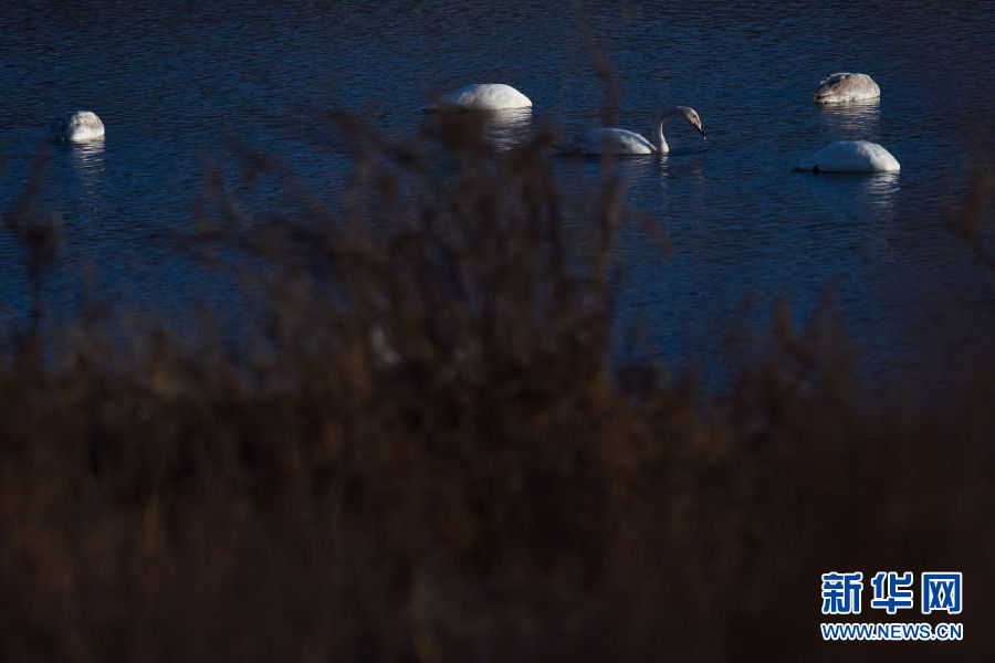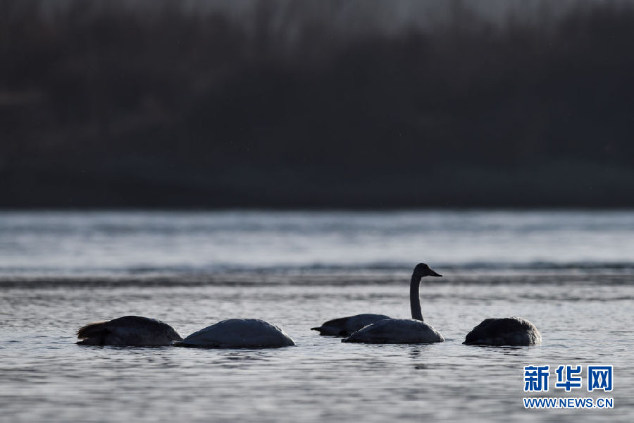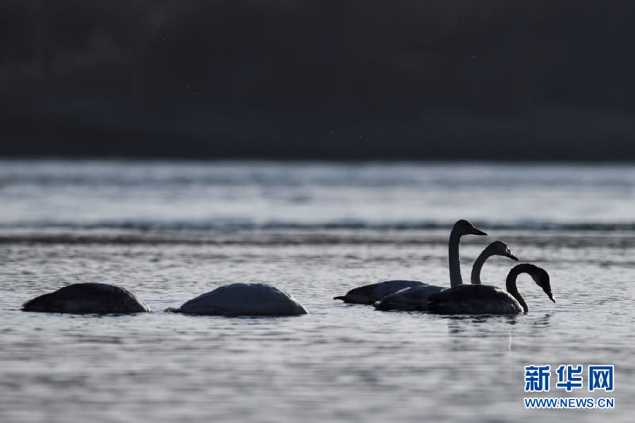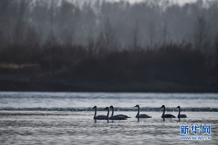 12月11日,幾只大天鵝在青海省貴德縣境內的黃河里游弋。新華社記者 吳剛 攝