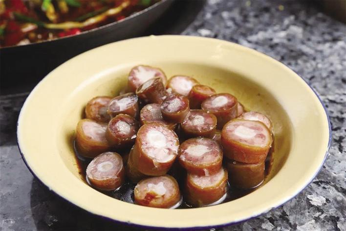 12月9日晚,記者和品鑒團成員們來到外婆怪味雞餐廳。走進店內,一股懷舊風撲面而來——擺滿食材的木架、古式的燈罩、茅草屋、實木桌椅,讓人仿佛置身于農家小院。該餐廳就餐區分為一樓大廳食材展示區、二樓大廳用餐區以及包間區,每層樓都各有特色,環境十分雅致。“非常喜歡這家店的裝修風格,店里布置的實木亭、老式電視、音箱以及那些高高掛起的腌臘肉都讓我感覺非常親切,也讓我想起了小時候在四川老家生活的時光。”品鑒團成員李女士說。