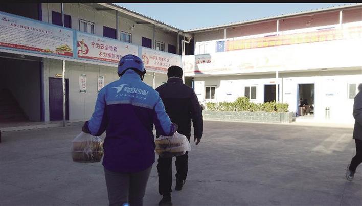 經過廚師們的精心準備,外賣打包好后,提前在店里等候的三位“餓了么”外賣小哥也開啟了這次不同尋常的外賣之旅?!斑@樣的愛心外賣還是第一次送,既興奮又緊張,希望工人們能夠用餐愉快?!眳⑴c本次外賣配送的外賣小哥侯永祥說。
