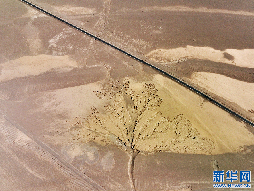 這是4月8日拍攝的位于阿里地區改則縣的“大地之樹”景觀(無人機照片)。 新華網發 曹枝清 攝